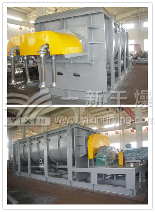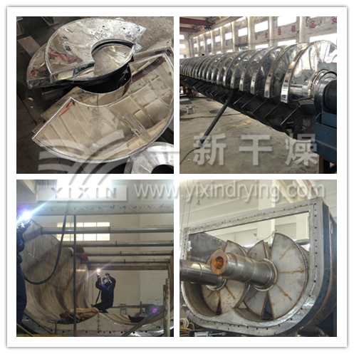 ??在槳葉及夾套通入熱介質加熱的同時,出料口上部同時進行抽濕,這樣大大增加了設備的干燥強度。蒸發出來的水份由抽濕風機帶出干燥機。