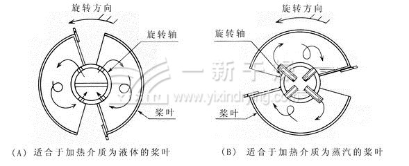 ??空心軸上密集排列著楔型中空槳葉,熱介質導熱油經空心軸流經槳葉,單位有效容積內傳熱面積很大。傳熱介質通過旋轉接頭,流經殼體夾套及空心攪拌軸,空心攪拌軸依據熱介質的類型而具有不同的內部結構,以保證比較好的傳熱效果。