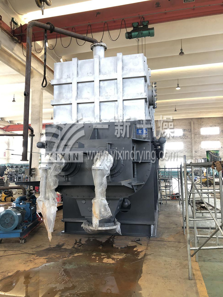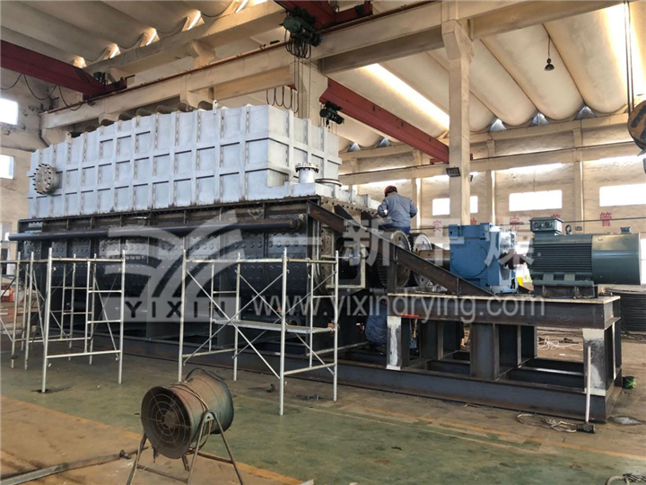 ??1、設備結構緊湊,裝置占地面積小。由設備結構可知,干燥所需熱量主要是由排列于空心軸上的空心槳葉壁面提供,而夾套壁面的傳熱量只占少部分。所以單位體積設備的傳熱面積大,可節省設備占地面積,減少基建投資;